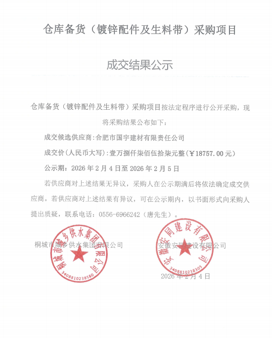 桐都会第三水厂聚丙烯酰胺采购项目成交效果公示