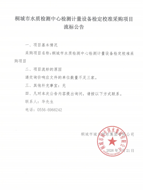 桐都会水质检测中心检测计量装备检定校准采购项目流标通告
