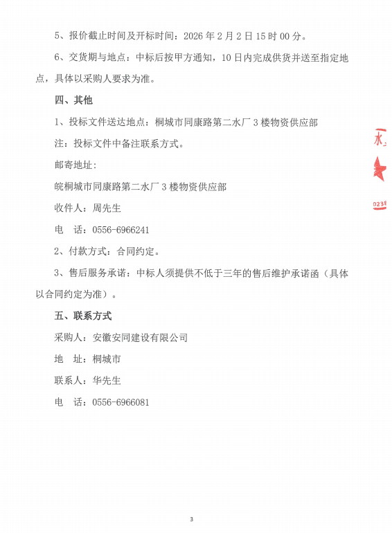 客栈备货质料(水泥管线桩)采购项目询价通告