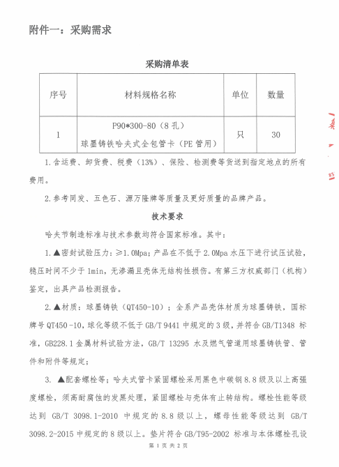 客栈备货质料(球墨铸铁井盖)采购项目(二次)询价通告