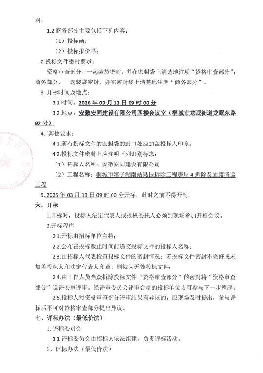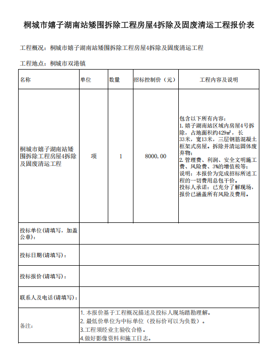 桐都会嬉子湖南站矮围拆除工程衡宇4拆除及固废清运工程招标通告